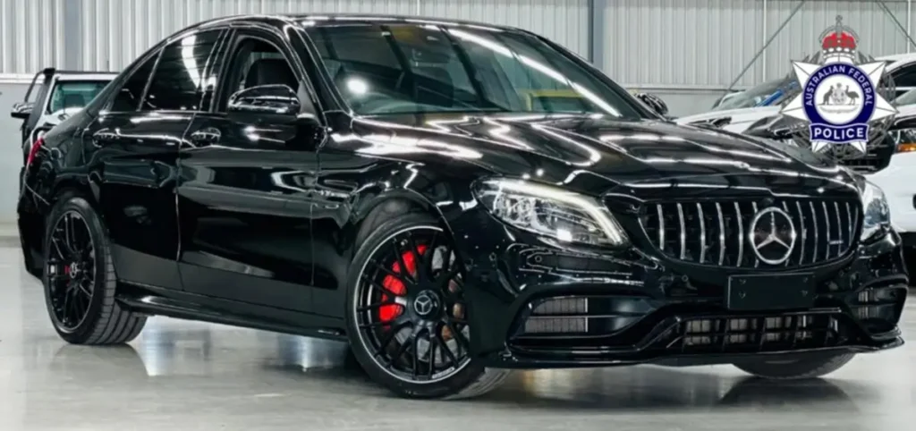 Figure 2: Among the seized luxury assets in the cybercrime case was a black 2019 Mercedes-Benz sedan.