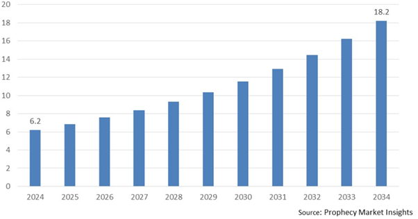 Figure 4: Market value of Rare Earth Oxides from 2024-2034 (in billion USD) [Source: Prophecy Market Insights]